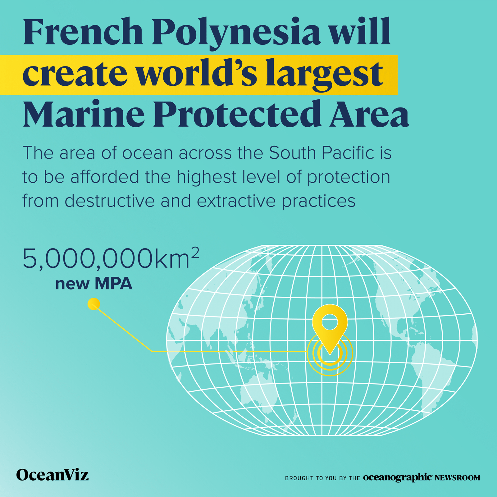 Французская Полинезия создала водоохранную территорию размером около 5 миллионов квадратных километров для сохранения биоразнообразия. В зависимости от классов защиты в этой зоне будут запрещены или ограничены действия людей, обычно пагубно влияющие на водную зону и её обитателей.